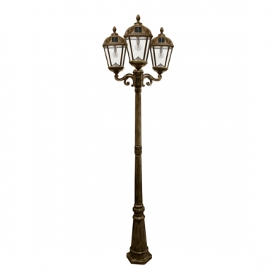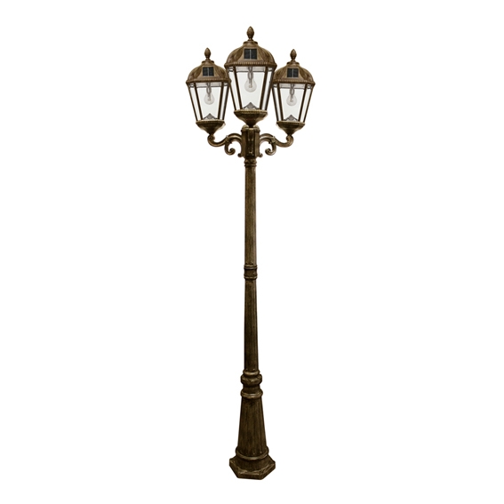 The Gama Sonic Royal Bulb Triple Head Lamp Post GS-98B-T, featuring our patented GS Solar LED Light Bulb, adds a touch of nobility to any landscape with its bold New Orleans street lamp architecture.