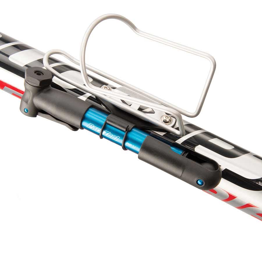 This super small micro pump is a perfect size to take along on a bike ride, fitting in just about any bag or jersey pocket or mounting directly to the frame. Ideal to take along when space and weight are an issue. Aluminum barrel with a soft-touch dual-density flip out handle. The locking head is Presta and Schrader valve compatible. Includes pump holder and hardware to securely attach to water bottle bosses or under bottle cage.