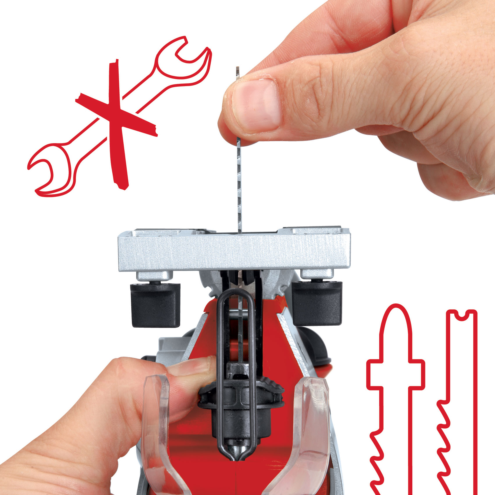 | Tool-free saw blade change |