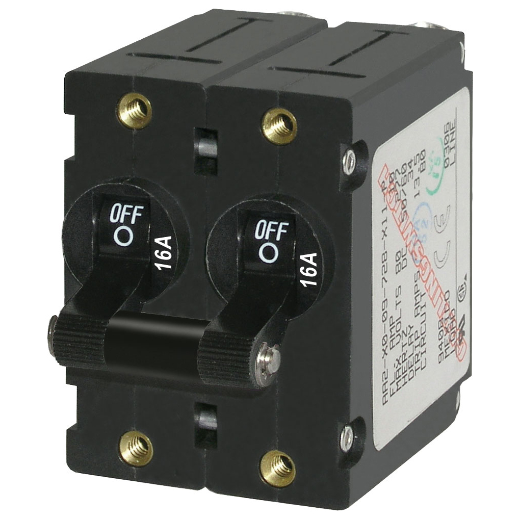 BS7348 A-Series Toggle Circuit Breaker - Double Pole 16A Black