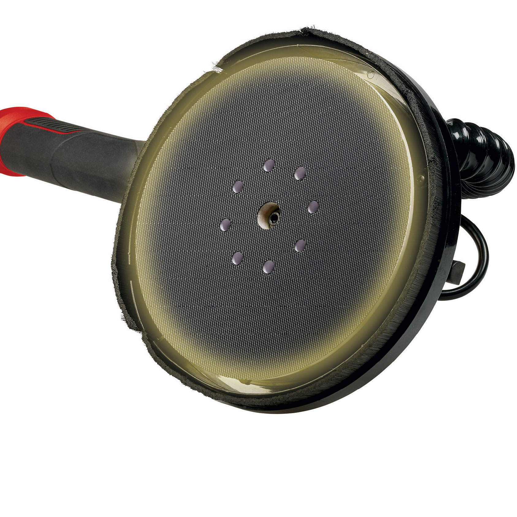 - Sanding disk with spring bearing for optimum contact to the wall