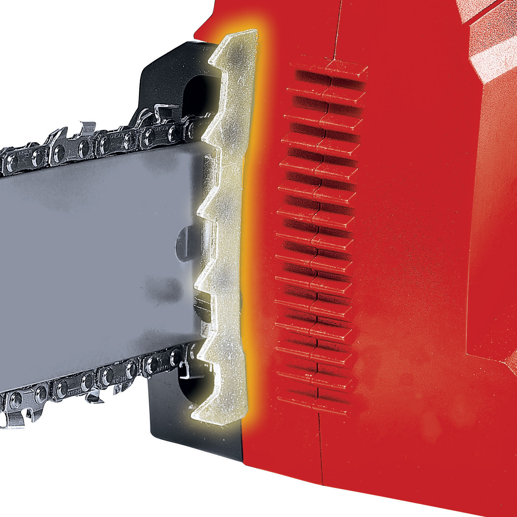 - Kickback protection with mechanical instant chain brake
