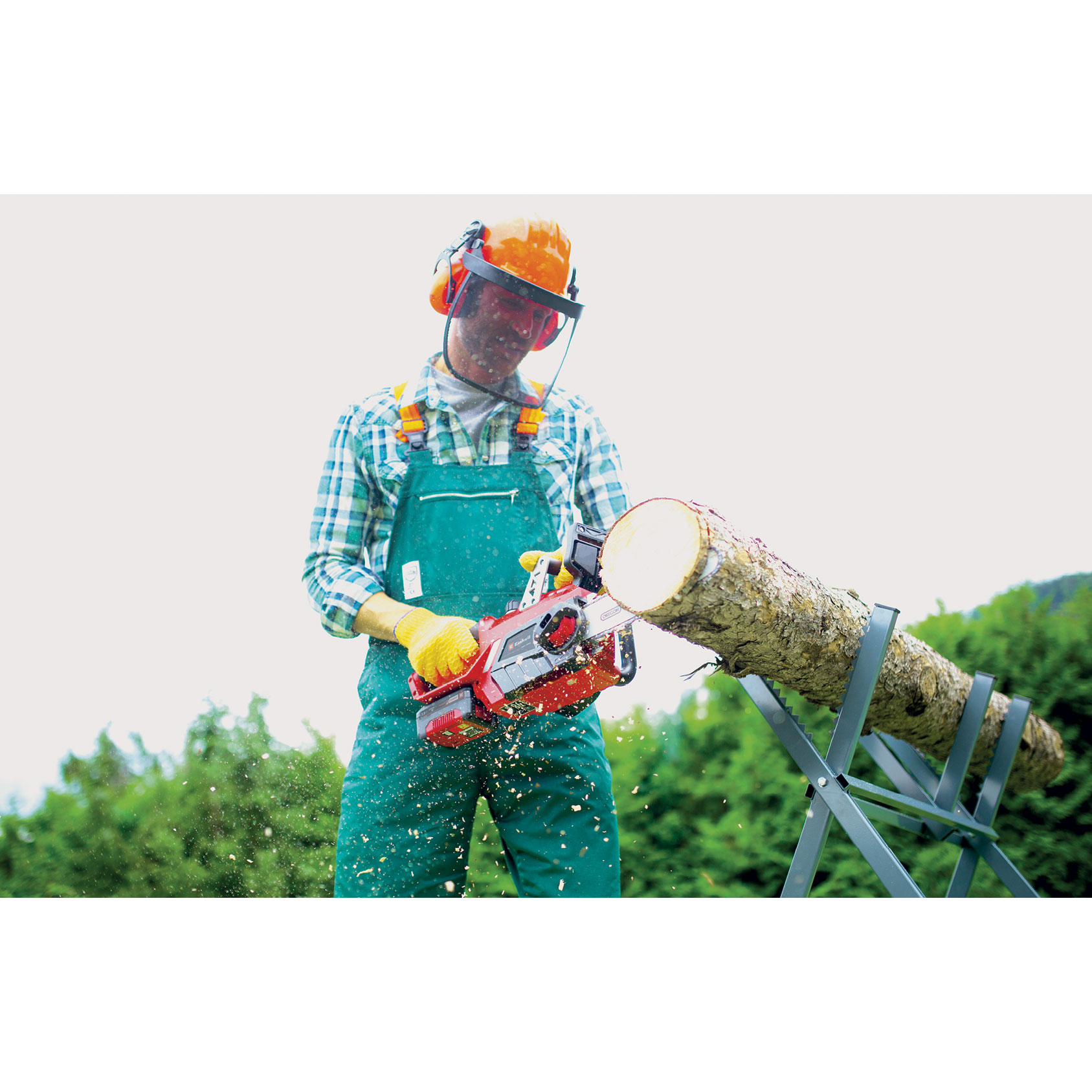 The Einhell Cordless Chain Saw Kit GE-LC 18/25-1 Li includes everything needed by first-time users of Power X-Change or by customers who are buying an additional tool from this product range. You can take Einhell cordless tools anywhere you want without the need for a power source nearby. No risk of tripping over tangled cables, no place you can't reach because the cable is too short, no frustrating search for an extension lead - the Power X-Change family makes all of this a thing of the past. The same battery and charger can be used for all Power X-Change products. The GE-LC 18/25-1 Li cordless chain saw kit combines outstanding Einhell product quality with the cutting performance of an OREGON guide bar and chain. This dependable, handy chain saw is ideal for pruning or felling small to medium-size trees, making firewood and trimming or cutting up construction timber. The Einhell cordless chain saw is safe and easy to use around the garden. Kickback protection and an instant-reaction mechanical chain brake protect you while you are working with the chain saw. The chain stops right away if kickback occurs. A catch bolt holds on to the chain if it jumps off the rail. The rugged metal stop claw keeps the saw stable for your added safety and working comfort. The ergonomic handle gives you a firm grip on the cordless chain saw and it fits easily in your hand. No tools are needed to adjust the chain tension or replace the chain. A big filler opening of the automatic chain lubrication system makes it easy to top it up if necessary. The set includes a fast charger, which can be used for all Power X-Change batteries, together with a rechargeable Power X-Change battery. The high-performance battery has a charge level indicator. Three LED show you at a glance how much charge is left in the battery. The same rechargeable battery can be used for all members of the Power X-Change family. The fast charger is suitable for all Power X-Change batteries.