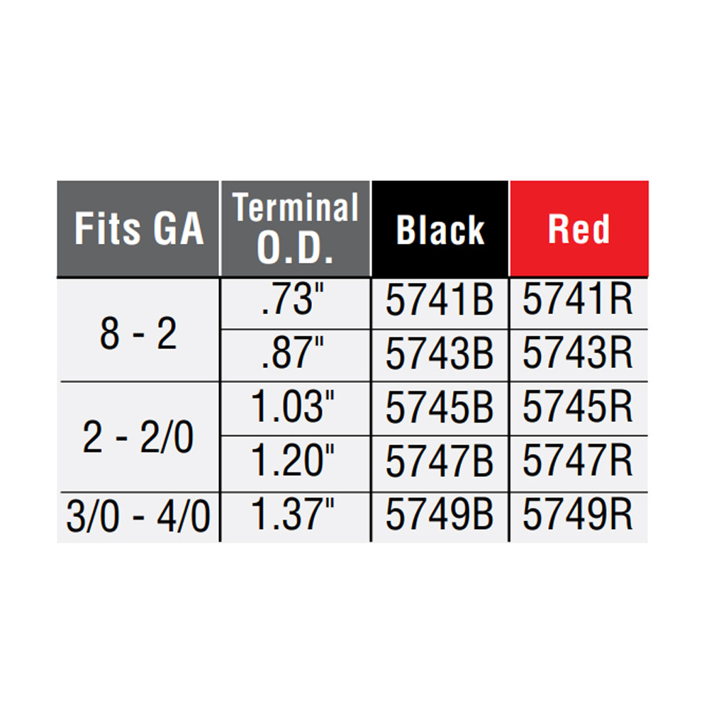 QC5747-005B Black Tab Insulator 1.2" O.D. Terminal Protector 2 - 2/0 AWG (Pack of 5)