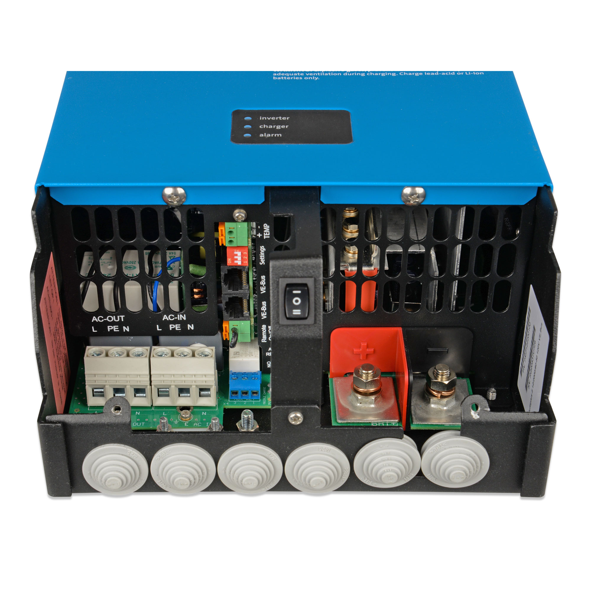 The MultiPlus, as the name suggests, is a combined inverter and charger in one elegant package. Its many features include a true sine wave inverter, adaptive charging, hybrid PowerAssist technology, plus multiple system integration features.