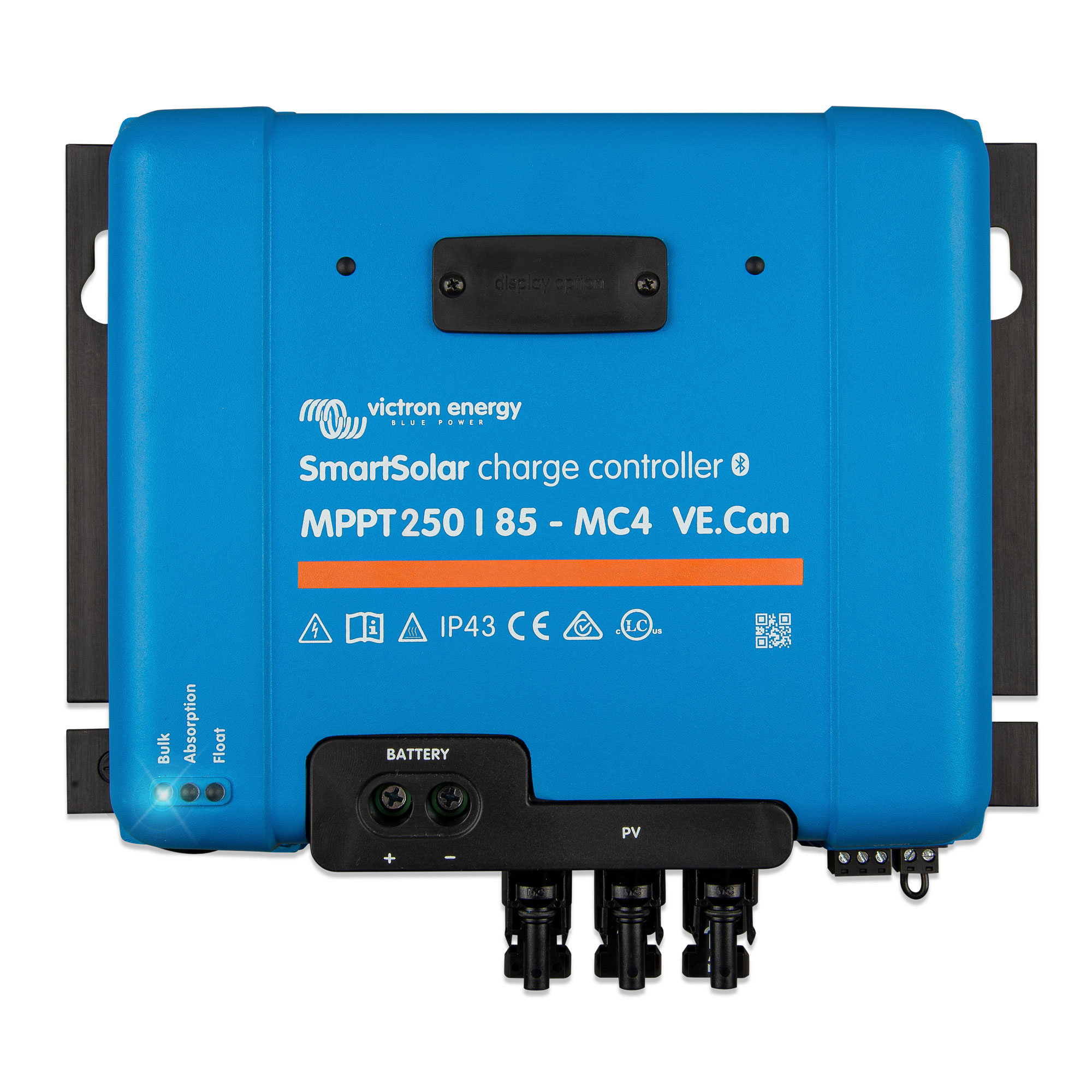 Le chargeur MPPT SmartSolar avec VE.Can utilise la technologie la plus récente et rapide pour convertir l'énergie provenant d'un champ solaire en énergie qui charge de manière optimale un banc de batteries.