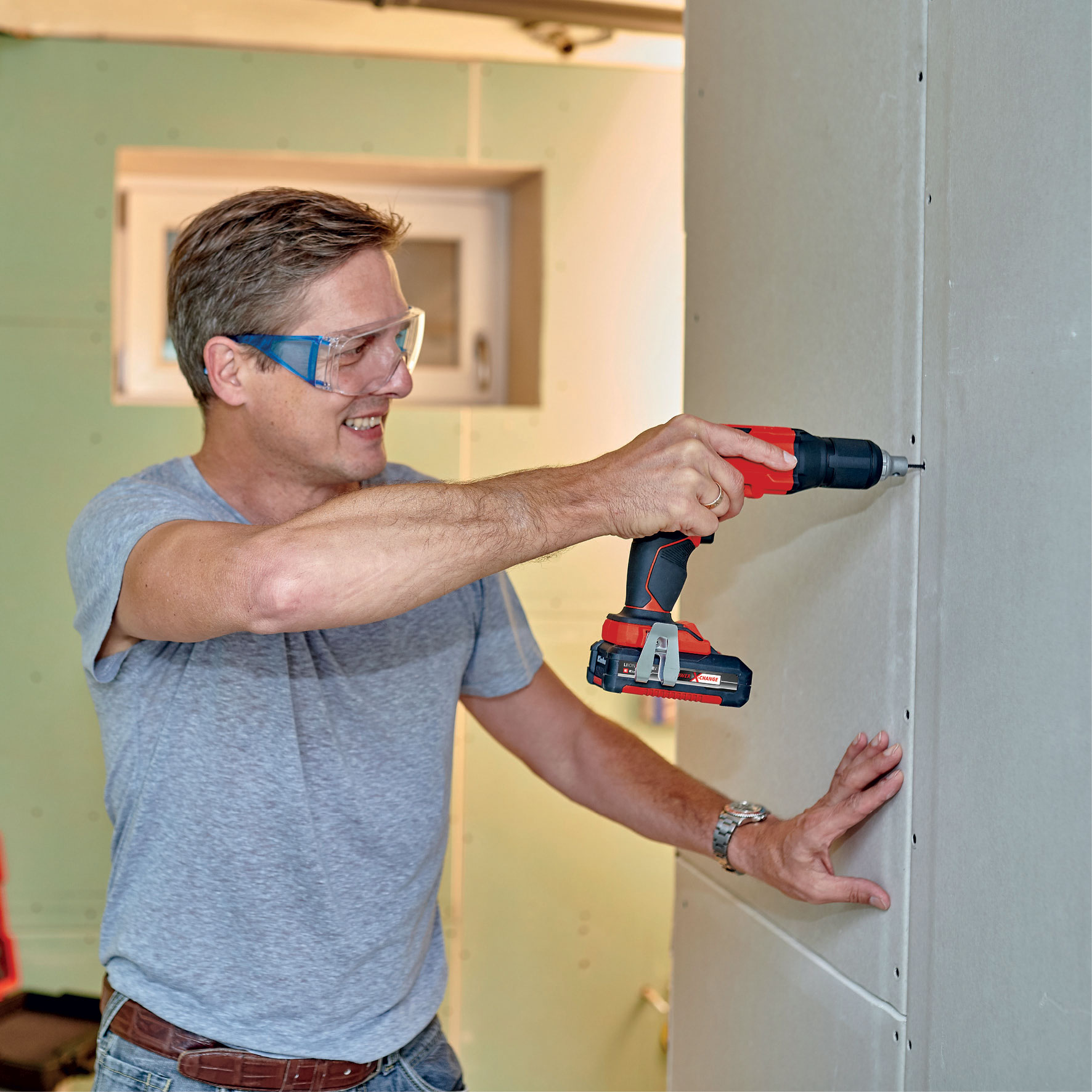 Le tournevis à cloisons sèches sans fil 4259985 d'Einhell est un outil puissant et précis pour réaliser des travaux de réfection et de rénovation en toute flexibilité, loin de toute prise de courant. Toutes les batteries de la gamme Power X-Change peuvent être utilisées et sont totalement interchangeables. La butée de profondeur réglable assure un blocage en profondeur précis. Le bouton de blocage pour marche continue permet une utilisation sans effort. Le raccord de pression intégré permet également un vissage facile. Sa conception compacte et légère avec des surfaces souples ergonomiques garantit le confort d’utilisation apprécié par tout bricoleur expérimenté. L’éclairage DEL du tournevis à cloisons sèches permet un travail optimal également dans les zones sombres. Grâce au porte-embout magnétique de 6.35 mm (1/4"), le changement d’embout est rapide et intuitif. Le tournevis à cloisons sèches sans fil est équipé d’un attache ceinture pour l'accrocher temporairement en toute sécurité. L’outil est vendu dans un coffret universel E-case très pratique. La batterie Power X-Change et le chargeur, sont disponibles séparément.