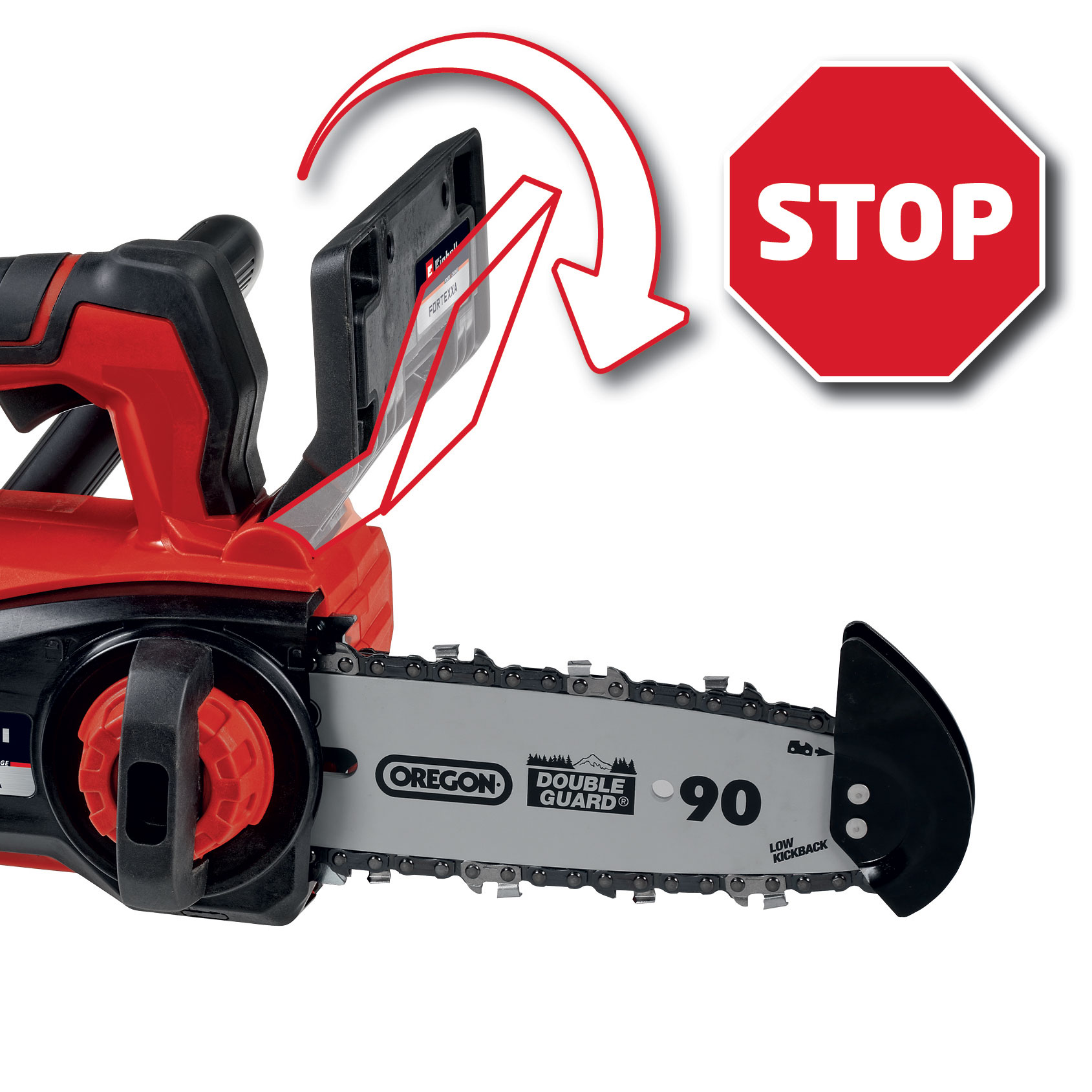 - Protection contre les rebonds avec frein de chaîne