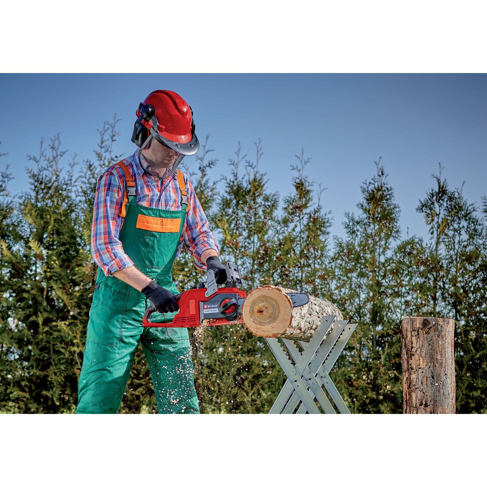 La scie à chaîne 12" sans fil 4600015 (FORTEXXA 18/30) d'Einhell est un outil puissant de la gamme Power X-Change. L’outil est entraîné par un moteur sans balais PurePOWER d'Einhell. Ce moteur sans balais offre davantage de puissance et une durée de fonctionnement plus longue que les moteurs à balais classiques. Le moteur sans balais est garanti 10 ans après son enregistrement en ligne. Avec sa barre et chaîne OREGON de qualité, même les branches les plus épaisses n’opposent aucune résistance à la scie à chaîne. Cette scie à chaîne sans fil est également très performante pour couper du bois équarris et du bois de chauffage. L’ajustement de la tension de la chaîne et son changement s’effectuent simplement et sans outil, facilitant ainsi la manipulation de l’outil. L’attrape-chaîne et la protection contre les rebond avec frein de chaîne permettent une utilisation en toute sécurité, et la grande ouverture de remplissage de l’huile et la lubrification automatique facilitant quant à elles l’entretien. La griffe en métal est robuste, et la poignée ergonomique à surface souple assure une prise en main ferme et sûre. La vitesse de la chaîne s’adapte en fonction de l’utilisation : on peut ainsi passer du mode pleine puissance 8 m/s (350.4 IPS) au mode ECO 6 m/s (236.2 IPS). La vitesse réduite de la chaîne en mode ECO augmente la durée d'utilisation de la batterie. L'outil est fourni sans batterie ni chargeur. Ces accessoires sont disponibles séparément.