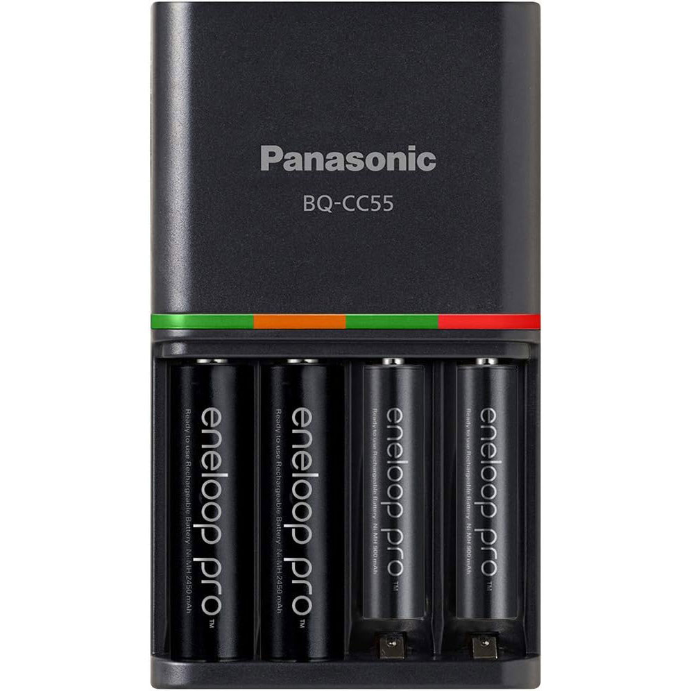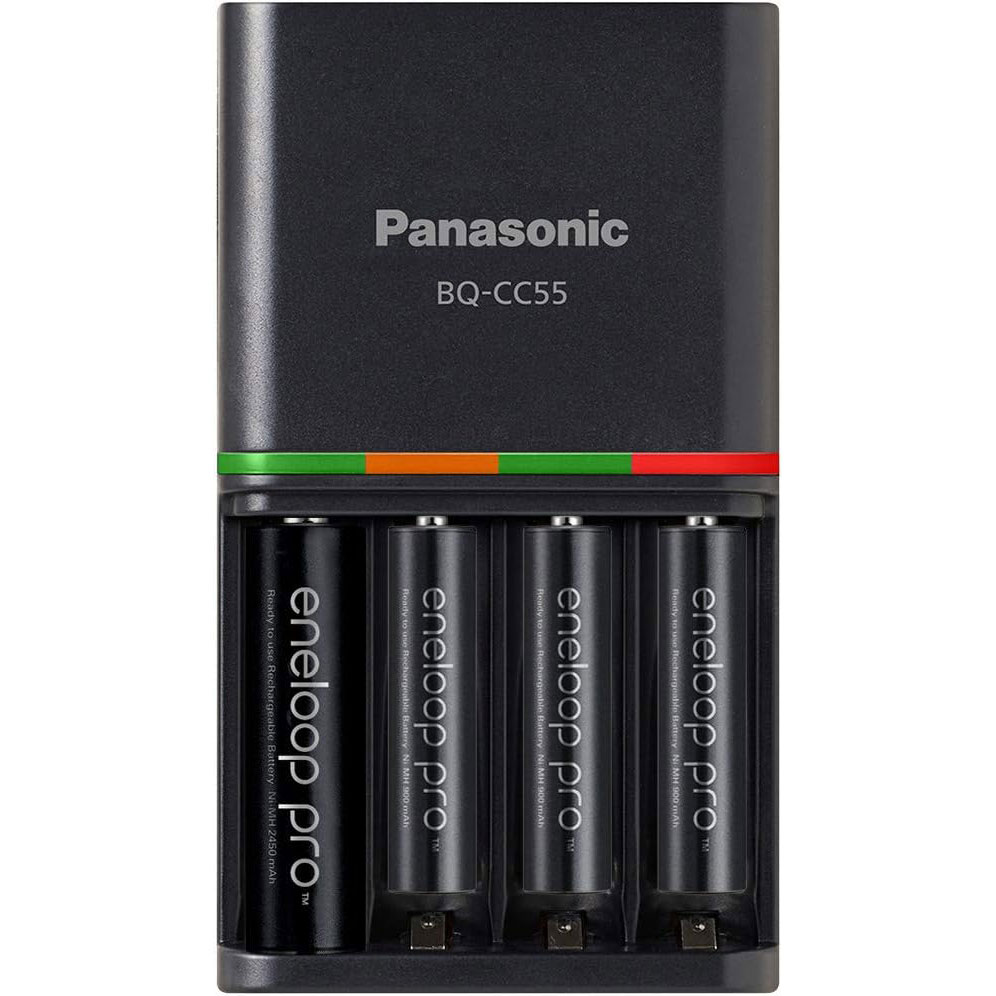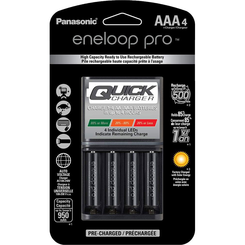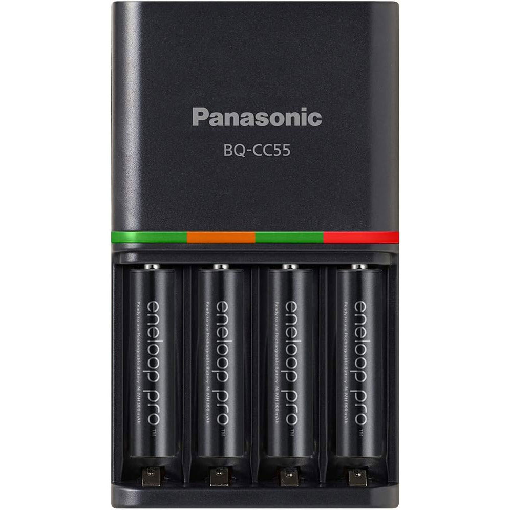 K-KJ55K3A4BA Chargeur rapide Panasonic 4 heures avec 4 piles AAA Eneloop Pro préchargées