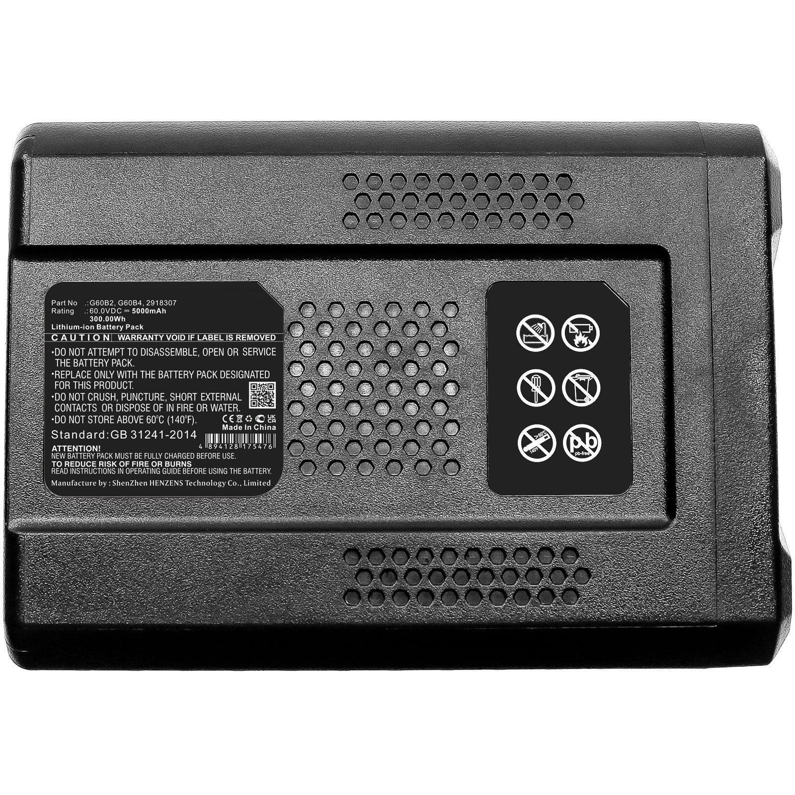 LG-TGWG60B2X Pile de remplacement pour outil de pelouse et jardin GreenWorks G60B2/B4 60V 5.0Ah